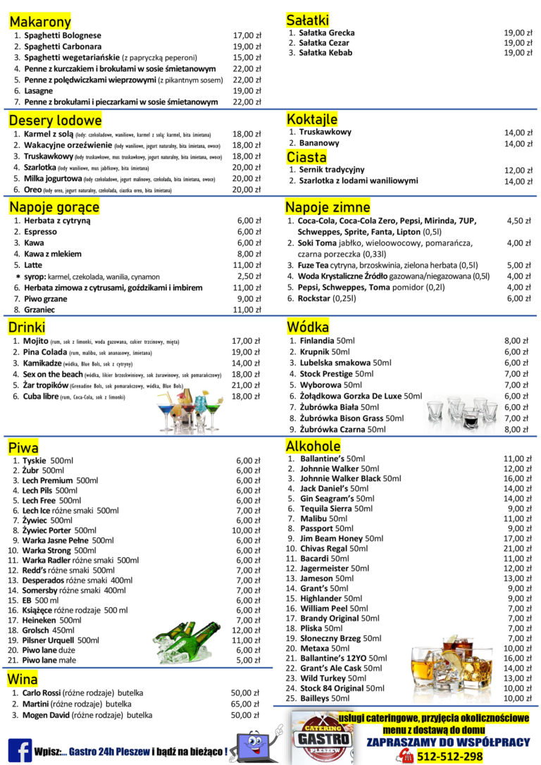 Ceny mogą różnić się od tych w lokalu. O aktualne ceny zapytaj zawsze podczas składania zamówienia.